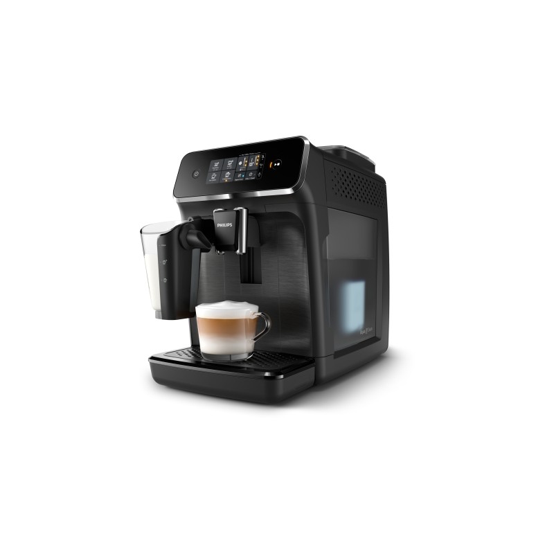 - 3 cafés aromáticos - Sistema de leche LatteGo - Mi elección de café - Ajuste de molinillo en 12 pasos - Intuitiva pantalla táctil - Temperatura y aroma perfectos - Conservar el aroma de los granos - Molinillos 100 % cerámicos - Sistema de preparación extraíble - Filtro AquaClean - Piezas aptas para el lavavajillas - Sistema de leche de 2 piezas sin tubos