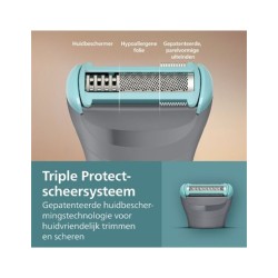 La afeitadora corporal Philips BG3480/15 Serie 3000 en gris es la compañera ideal para recortar y afeitar el vello corporal. Su sistema de afeitado suave con la piel y puntas redondeadas previene la irritación, incluso en zonas sensibles. Los peines recortadores de 3, 5 y 7 mm incluidos te permiten determinar fácilmente la longitud de vello deseada. Gracias a su mango ergonómico y al funcionamiento inalámbrico, tienes control total, incluso en la ducha. Después de usarla, simplemente enjuaga el dispositivo bajo el grifo. Luce un aspecto impecable con facilidad y comodidad.Especificaciones técnicasTipo de productoAfeitadora corporalAncho de corte 32 milímetrosLongitud mínima de corte 0,2 milímetrosLongitud máxima de corte 3 milímetrosEjecuciónNúmero de peines de fijación 2Peines de fijación de longitud ajustable NoArchivos adjuntos 2Número de configuraciones de longitud 3Recortadora de precisión NoMaterial de la hoja TitanioCuchilla autoafilable NoUso húmedo SíEnjuagable SíAutolimpieza NoMostrar el estado de carga SíLuz indicadora SíMostrar NoSuministro de energíaFuente de energía Batería recargableVoltaje de entrada 220 VMétodo de carga USB tipo CVoltaje universal SíTipo de batería LitioMáxima duración de la batería 80 minutosTiempo de carga 8 horasFunción de carga rápida No