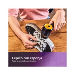 Philips Limpiador para Zapatillas Deportivas, Incluye 3 Cepillos para Distintos Materiales, Limpieza Eficaz, Llévatelo Contigo, Color Amarillo/Azul (GCA1000/60)Marca Philips Domestic AppliancesColor Amarillo/AzulMaterial del mango PlásticoUsos específicos del producto Ventilación de la secadoraDimensiones del producto 11,6L x 9,3W x 20,4H centímetrosMaterial Cuero, malla, PVC, caucho, esponja, gamuzaFunción especial LigeroForma RedondaComponentes incluidos 4 pilas AA, 3 cabezales de cepilloRecomendación de superficie LeatherKit limpiador de zapatillas superior: limpieza eficaz con hasta 500 rotaciones por minuto - Con 3 opciones de cabezales para uso con distintos materialesUn cepillo adecuado para cada ocasión: duro para goma texturizada y suelas - Suave para las mallas y la lona - Esponja para PVC, cuero, ante o gamuza, y otros materiales delicadosSimple de usar: solo humedece el cepillo con agua y jabón, limpia y seca con un paño cuando hayas finalizadoFácil de transportar: compacto, portátil y a base de pilas, este limpiador de zapatillas te acompaña a cualquier parteLo que incluye: limpiador de zapatillas, cepillo duro, cepillo suave, cepillo con esponja, 4 pilas AA