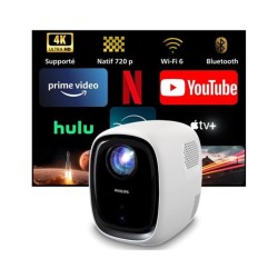 Philips, Neopix 130, Proyector de cine en casa, Corrección de imagen avanzada, Full HD 720p, Fuente de luz LED avanzada, Modo espejo Wi-FI, sonido estéreo, sistema operativo conectado, blanco (blanco)Marca PHILIPSUsos recomendados para el producto Cine en casaFunción especial Con wifiTecnología de conectividad WifiResolución de pantalla 1280 x 720Resolución de pantalla máxima 1280 x 720Tipo de pantalla LCDFactor de forma PortátilTipo de montaje Montaje en mesaComponentes incluidos DispositivoCorrección avanzada de imágenesGracias a la tecnología de enfoque automático, zoom digital, corrección trapezoidal automática y corrección de 4 ángulos que eliminan las deformaciones, tendrás una imagen perfectamente proporcionada incluso cuando el proyector no esté alineado con la pared.Real HD 720pDisfruta de películas y mucho más en alta definición HD 720p, ofreciendo un nivel de detalle superior a las resoluciones inferiores. La imagen es realista y el texto que se muestra es perfectamente nítido.Fuente de luz LED avanzadaEl sistema de iluminación LED de alta calidad ofrece colores vivos y vivos y tiene una vida útil de hasta 30.000 horas. Con un uso promedio de 4 horas al día, esto equivale a 20 años de funcionamientoModo espejo Wi-FiConecte sus dispositivos portátiles inalámbricos para ver y compartir todo su contenido en modo espejo. ¿Tienes videos en tu teléfono? No te preocupes, simplemente use una conexión Wi-Fi compatible con iOS, Android, Mac y PCLuminOSSumérgete en el mundo de LuminOS con aplicaciones preinstaladas, como Amazon Prime, Disney+ y YouTube. Disfruta de una selección ilimitada de entretenimiento cuando enciende, con todas tus aplicaciones favoritas ya preinstaladas.Proyector de sonido estéreoGracias a su sistema de audio estéreo con dos altavoces, sumérgete en un sonido excepcional. ¿Necesitas más poder? Utilice la salida jack de 3,5 mm para conectar sus auriculares o altavoces externos.Marca PHILIPSFabricante PhilipsModelo NeoPix 130 BlancNombre del modelo NeoPix 130Número de modelo del producto NeoPix 130 BlancNúmero de producto NPX130W/INTInterfaz del hardware HDMI, USB, VGAAparatos compatibles SmartphoneOtras características Con wifiComponentes incluidos DispositivoNúmero de productos 1Tipo de pantalla LCDTasa de contraste de imagen HighRelación de aspecto 16:9Resolución de pantalla 1280 x 720Resolución máxima 1280 x 720Voltaje 2.3E+2 Voltios (CA)Pilas / baterías incluidas SíPilas / baterías necesarias NoComposición de la pila de la batería AlcalinaFrecuencia de actualización 120.Tipo de conector WifiFactor de forma PortátilCompatibilidad del montaje Montaje en mesaIncluye batería recargable NoPeso del producto 1,66 kg