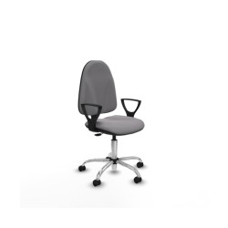 Características Piqueras y Crespo Algarra CP similpiel gris brazos fijos base cromada ruedas engomadas 50mm Especificaciones La silla Algarra de PIQUERAS Y CRESPO es una opci�n ideal para quienes buscan comodidad y funcionalidad en su espacio de trabajo. Su asiento de corte ofrece un soporte acolchado que garantiza confort durante largas jornadas. El respaldo de 50 cm proporciona un buen soporte, mientras que la regulaci�n en altura, inclinaci�n y profundidad del respaldo, junto con la regulaci�n de la altura del asiento (de 45 a 59 cm), permite una adaptaci�n personalizada para mayor ergonom�a.Equipada con ruedas de nailon engomadas de 5 cm de di�metro, con eje interno y perno de acero de 11 mm, esta silla giratoria gris facilita el desplazamiento suave y seguro sobre diferentes superficies. Su base met�lica cromada de 5 radios y 60 cm de di�metro asegura estabilidad y durabilidad.Los brazos fijos, ajustables en altura entre 65 y 78 cm, aportan soporte adicional sin sacrificar movilidad. La silla de escritorio regulable Algarra combina dise�o y practicidad, siendo perfecta para espacios que requieren una silla de ruedas para escritorio con caracter�sticas t�cnicas avanzadas.Con una altura total ajustable entre 85 y 100 cm, esta silla acolchada escritorio se adapta a diversas necesidades y ambientes laborales. Incluye instrucciones de montaje y una garant�a de 3 a�os, asegurando una inversi�n confiable y duradera.