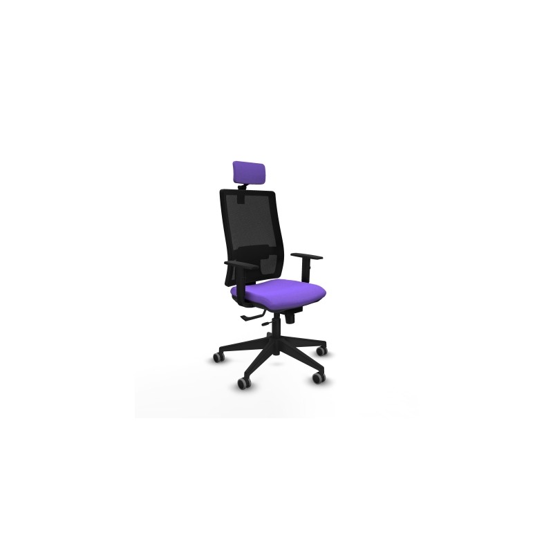 Características Piqueras y Crespo Horna traslack malla negra bali lila brazos 1D base piramidal cabecero 2D ruedas 65mm engomadas Especificaciones Horna, silla de oficina ajustableDescripci�n del productoLa silla de escritorio para gordos Horna de PIQUERAS Y CRESPO es la soluci�n perfecta para quienes buscan comodidad y soporte durante largas jornadas de trabajo. Dise�ada para un uso intensivo de 24 horas, esta silla es ideal para quienes pasan mucho tiempo en su escritorio.Con un peso m�ximo de 120 Kg, la Horna ofrece una estructura robusta y segura. Sus brazos regulables 1D permiten ajustar la altura para un mayor confort, mientras que el mecanismo Sincro/Traslack facilita el movimiento y la adaptaci�n a diferentes posiciones.El cabecero regulable proporciona un soporte adicional para el cuello, y el apoyo lumbar ajustable asegura que tu espalda reciba el soporte necesario, ayudando a mantener una postura correcta durante todo el d�a. Adem�s, el respaldo regulable en altura se adapta a tus necesidades, brindando un soporte personalizado.La Horna est� equipada con ruedas de 65mm para parqu�, lo que permite un deslizamiento suave y f�cil en cualquier superficie. Su espuma inyectada de alta calidad, con una densidad de 50 mm y 25 Kg/m3, garantiza una experiencia de asiento acolchada y c�moda, ideal para largas horas de trabajo.Con un dise�o moderno y funcional, esta silla de oficina acolchada no solo es pr�ctica, sino que tambi�n se adapta a cualquier entorno de trabajo, mejorando tu productividad y bienestar.