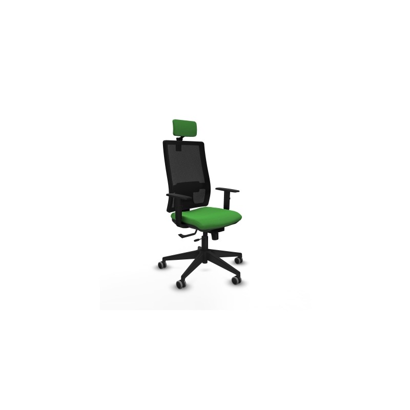 Características Piqueras y Crespo Horna traslack malla negra bali verde brazos 1D base piramidal cabecero 2D ruedas 65mm engomadas Especificaciones Horna, c�moda silla para oficinaDescripci�n del productoLa Horna de PIQUERAS Y CRESPO es una silla operativa dise�ada para ofrecerte la m�xima comodidad durante largas jornadas de trabajo, con un uso recomendado de hasta 24 horas. Su estructura robusta soporta un peso m�ximo de 120 Kg, lo que la convierte en una opci�n ideal para cualquier oficina.Esta silla cuenta con brazos 1D que te brindan un soporte adicional, y un mecanismo Sincro/Traslack que permite ajustar la inclinaci�n del respaldo y el asiento, adapt�ndose a tus movimientos. El cabecero regulable y el apoyo lumbar ajustable aseguran que tu postura sea la correcta, reduciendo la tensi�n en la espalda durante el trabajo.El respaldo regulable en altura se adapta a tu cuerpo, mientras que la espuma inyectada de 50 mm y 25 Kg/m3 proporciona un confort excepcional. Las ruedas de 65mm para parqu� permiten un deslizamiento suave y silencioso, facilitando tu movilidad en el espacio de trabajo.Con un acabado elegante y un dise�o moderno, la Horna no solo es funcional, sino que tambi�n complementa la est�tica de tus escritorios y sillas para oficina. Esta silla es una excelente elecci�n si buscas componentes para sillas de oficina que ofrezcan tanto estilo como comodidad. No dudes en considerar la Horna para tu escritorio y silla oficina, y disfruta de una experiencia de trabajo m�s c�moda y productiva.