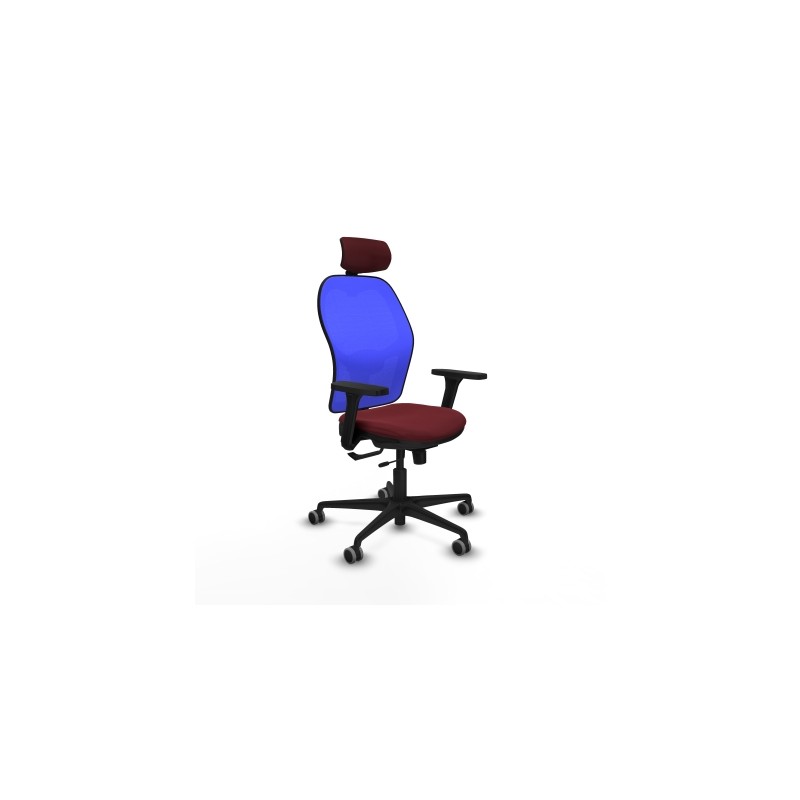 Características Piqueras y Crespo Jorquera traslack malla azul similpiel granate brazos 3D base nailon cabecero 2D ruedas 65mm engomada Especificaciones Jorquera sillas sencillas para oficinaDescripci�n del productoLa silla Jorquera de PIQUERAS Y CRESPO es la opci�n ideal para quienes buscan comodidad y funcionalidad en su espacio de trabajo. Dise�ada para un uso intensivo de 24 horas, esta silla es perfecta para largas jornadas, garantizando un soporte excepcional.Con un peso m�ximo de 120 Kg, la Jorquera cuenta con brazos 3D que se adaptan a tus movimientos, brindando un confort adicional. Su mecanismo Sincro/Traslack permite un ajuste f�cil y preciso, asegurando que encuentres la posici�n m�s c�moda para ti.El cabecero ajustable proporciona un soporte extra para el cuello, mientras que el apoyo lumbar ajustable ayuda a mantener una postura correcta durante el trabajo. El respaldo fijo ofrece estabilidad y soporte, ideal para mantenerte concentrado en tus tareas.La espuma inyectada de alta calidad, con una densidad de 50 mm y 50 Kg/m3, garantiza una experiencia de asiento c�moda y duradera. Adem�s, las ruedas de 65mm parqu� permiten un deslizamiento suave sobre diferentes superficies, facilitando el movimiento en tu oficina.Con un dise�o elegante y funcional, la Jorquera es una de las sillas recomendadas para estudiar, as� como para sillas reuniones y sillas recibidor oficina. Su acabado y color se integran perfectamente en cualquier entorno, haciendo de esta silla una elecci�n vers�til y pr�ctica.