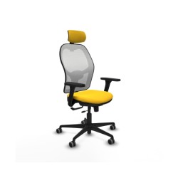 Jorquera, sillas m�s c�modas para trabajarDescripci�n del productoLa Jorquera de PIQUERAS Y CRESPO es una de las sillas m�s c�modas para trabajar, dise�ada para ofrecerte el m�ximo confort durante largas jornadas. Ideal para un uso intensivo de 24 horas, esta silla soporta un peso m�ximo de 120 Kg, asegurando su durabilidad y resistencia.Equipado con brazos 3D, el modelo permite ajustar la altura y el �ngulo de los brazos, adapt�ndose a tus necesidades y mejorando tu postura. Su mecanismo Sincro/Traslack proporciona un movimiento fluido del respaldo, permitiendo que se incline de manera sincronizada con el asiento, lo que favorece una experiencia ergon�mica.El cabecero ajustable te brinda un soporte adicional para el cuello, mientras que el apoyo lumbar ajustable ayuda a mantener la alineaci�n de la columna, reduciendo la tensi�n en la espalda. Con un respaldo fijo, esta silla garantiza estabilidad y soporte en todo momento.La espuma inyectada de alta calidad, con una densidad de 50 Kg/m3 y un grosor de 50 mm, proporciona una comodidad excepcional, adapt�ndose a la forma de tu cuerpo. Las ruedas de 65mm para parqu� permiten un deslizamiento suave y silencioso, ideal para cualquier tipo de suelo.Con un acabado elegante y un dise�o que se adapta a cualquier espacio, la Jorquera no solo es funcional, sino que tambi�n se convierte en una de las sillas escritorio c�modas y bonitas que puedes encontrar. Perfecta para oficinas, salas de reuniones o como sillas interlocutoras para oficina, esta silla es una opci�n cl�sica que no pasar� desapercibida.