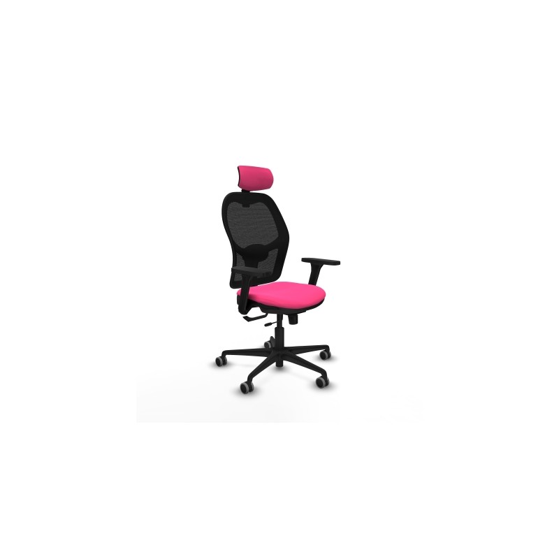 Características Piqueras y Crespo Jorquera traslack malla negra similpiel rosa brazos 3D base nailon cabecero 2D ruedas 65mm engomada Especificaciones Jorquera silla operativaLa silla oficina rejilla que necesitasLa silla oficina rejilla Jorquera de PIQUERAS Y CRESPO es la opci�n ideal para quienes buscan comodidad y funcionalidad en su espacio de trabajo. Dise�ada para un uso intensivo de 24 horas, esta silla operativa soporta un peso m�ximo de 120 Kg, garantizando durabilidad y resistencia.Equipado con brazos 3D, el modelo Jorquera permite ajustar la altura y el �ngulo de los brazos, adapt�ndose a tus necesidades y mejorando tu postura. Su mecanismo sincro/traslack proporciona un movimiento fluido y c�modo, ideal para largas jornadas laborales.El cabecero 2D y el apoyo lumbar 1D ofrecen un soporte adicional, ayudando a mantener la alineaci�n de la columna y reduciendo la tensi�n en la espalda. El respaldo fijo asegura estabilidad, mientras que la espuma inyectada de 50 mm y 50 Kg/m3 proporciona una comodidad excepcional.Las ruedas de 65mm parqu� permiten un deslizamiento suave sobre diferentes superficies, facilitando el movimiento en tu oficina. Adem�s, su dise�o en silla oficina transpirable asegura una adecuada ventilaci�n, manteniendo la frescura durante todo el d�a.Con un acabado elegante y moderno, la Jorquera no solo es funcional, sino que tambi�n aporta un toque de estilo a tu espacio de trabajo. Esta silla oficina transparente es la soluci�n perfecta para quienes buscan un equilibrio entre confort y dise�o.