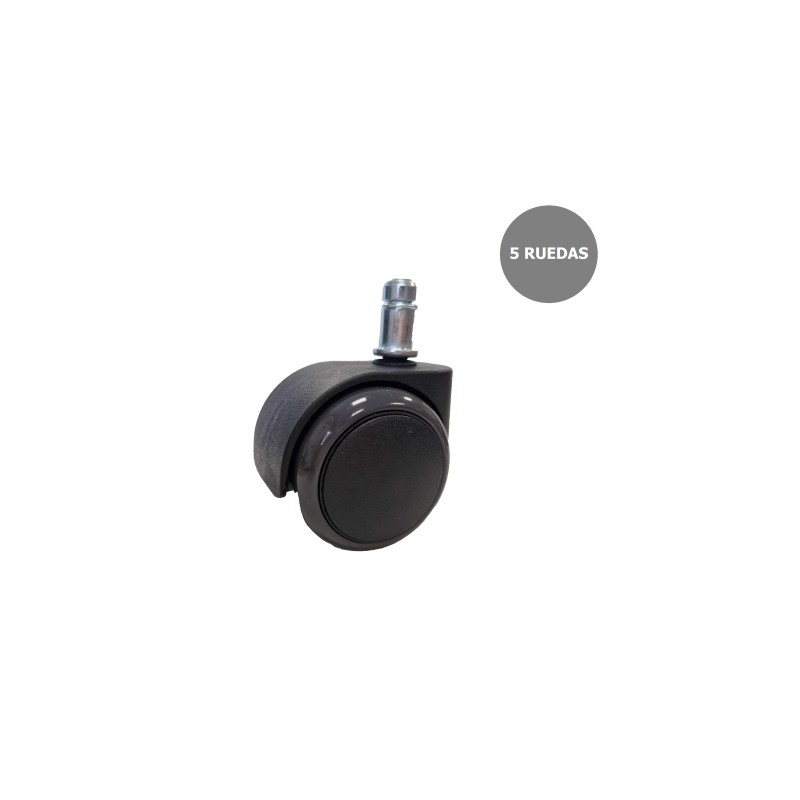 Características Piqueras y Crespo Kit de 5 ruedas engomadas de 50 mm perno 11 mm Especificaciones Ruedas de PIQUERAS Y CRESPO para uso moderadoDescripci�n del productoLa silla de oficina de PIQUERAS Y CRESPO es ideal para quienes buscan comodidad y funcionalidad durante 4-6 horas de uso diario. Con un dise�o en color negro y un acabado en nailon, esta silla se adapta perfectamente a cualquier entorno de trabajo.Su estructura est� dise�ada para soportar un peso m�ximo de 100 Kg, lo que la convierte en una opci�n robusta y duradera. Aunque no cuenta con brazos, cabecero ni apoyo lumbar, su dise�o minimalista permite una mayor libertad de movimiento, ideal para tareas que requieren concentraci�n y agilidad.El mecanismo de la silla es fijo, lo que proporciona estabilidad y seguridad durante su uso. Adem�s, al no tener ruedas, es perfecta para espacios donde se busca un anclaje firme al suelo, evitando desplazamientos accidentales.Esta silla es una excelente opci�n para quienes pasan largas horas en su escritorio, ofreciendo un soporte adecuado sin comprometer el estilo. Su dise�o sencillo y elegante se integra f�cilmente en cualquier oficina, brindando un ambiente profesional y acogedor.