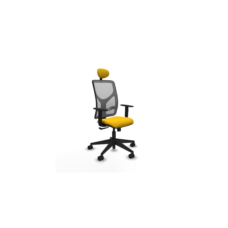 Piqueras y Crespo Motilla sincro malla gris bali amarillo brazos 1D base piramidal cabecero fijo ruedas 65mm nailon