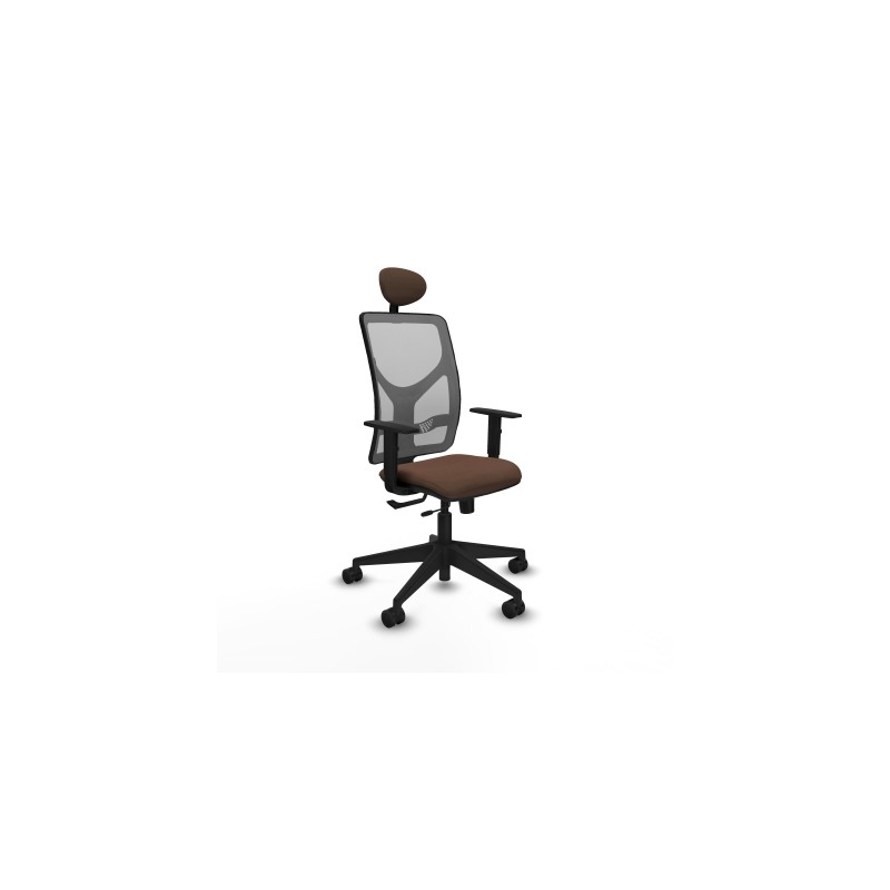 Piqueras y Crespo Motilla traslack malla gris bali marr?n oscuro brazos 1D base piramidal cabecero fijo ruedas 65mm nailon
