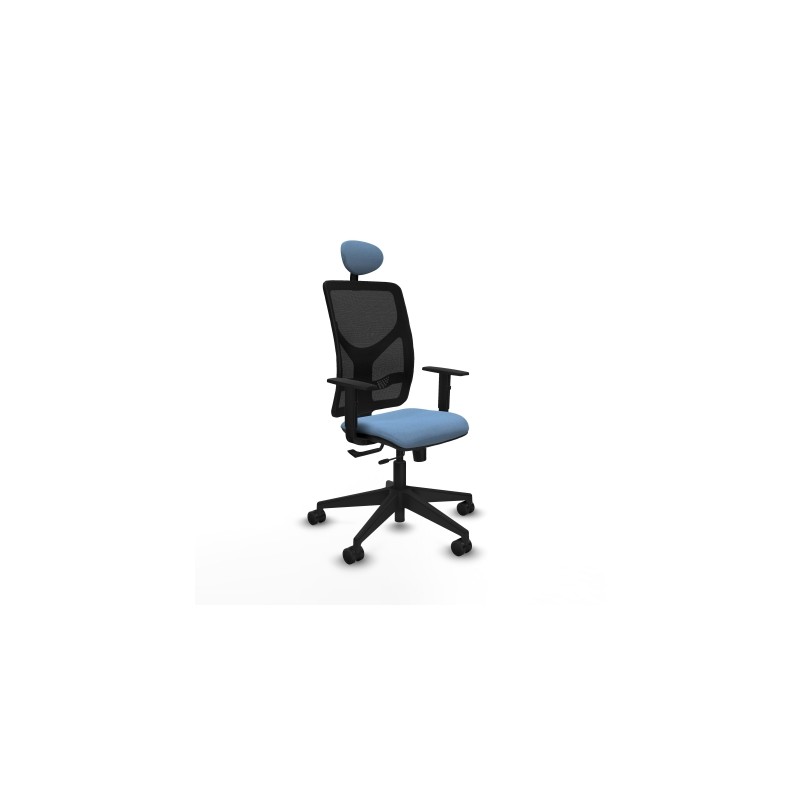 Piqueras y Crespo Motilla traslack malla negra bali azul cielo brazos 1D base piramidal cabecero fijo ruedas 65mm nailon