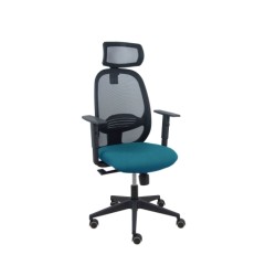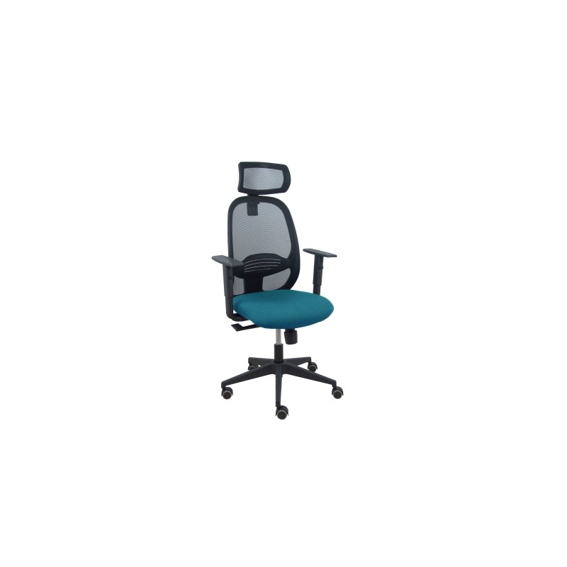 Piqueras y Crespo Silla Cilanco negra malla negra asiento bali verde petróleo brazo regulable cabecero regulable