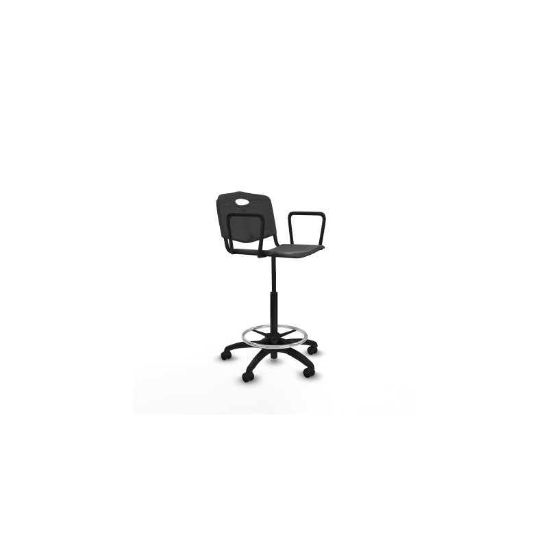 Piqueras y Crespo Taburete Robledo giratorio pl?stico negro brazos fijos base poliamida ruedas autofrenantes 50mm