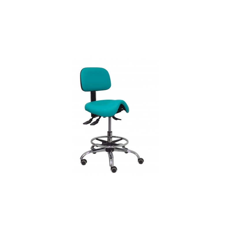 Características Piqueras y Crespo Taburete Zarza similpiel verde turquesa Especificaciones PIQUERAS Y CRESPO Taburete clínico giratorio y ergonómico con asiento anatómico y regulable en altura. Taburete especial para uso en clínicas de todo tipo. Su característica principal, además de su forma anatómica, es que es de fácil limpieza. Además, incorpora aro reposapiés cromado para un mayor apoyo y descanso de los pies. Detalles técnicos: Asiento ergonómico y anatómico para una mayor adaptación al usuario, fabricado en material reciclado de alta resistencia, de 5 mm de grosor con forma anatómica y espuma de 6 cm de grosor con refuerzo para la zona prostática. Asiento y respaldo tapizados en tejido similpiel color verde turquesa. Mecanismo asincro que permite la basculación de asiento y respaldo. Regulable en altura mediante cilindro de gas cromado. Giratoria 360º. Base metálica de 5 radios y 55 cm de diámetro, con acabado cromado. Ruedas de nailon con rodamiento de goma y eje central de acero, especiales para suelos delicados. Aro reposapiés cromado de 20 cm de diámetro y regulable en altura. Otros detalles: Favorece una buena postura integral para evitar posibles problemas de espalda. Ergonómica. 36 meses de garantía. FABRICACIÓN ESPAÑOLA. Fácil montaje. Para pedidos de gran volumen, póngase en contacto con nosotros para consultar disponibilidad.