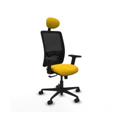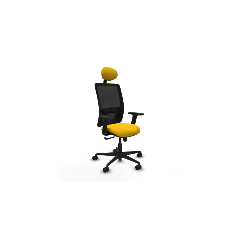 Piqueras y Crespo Zulema sincro malla negra bali amarillo brazos 2D base nailon cabecero fijo ruedas 65mm nailon
