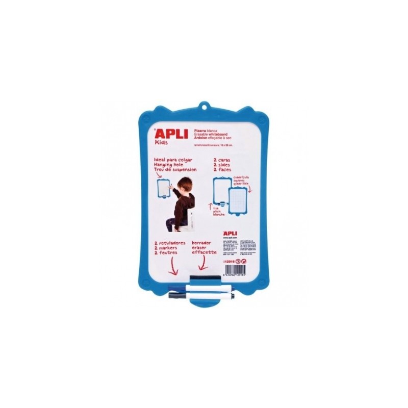 PIZARRA RIGIDA PARA ROTULADORES APLI KIDS DOBLE CARA INCLUYE 2 ROTULADORES BORRADOR AGUJERO SUPERIOR PARA COLGAR BLANCO 12916