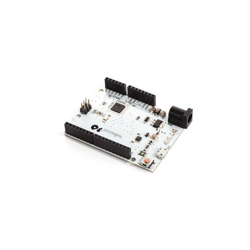 La VMA103 (compatible con la Arduino® leonardo) es una placa basada en el microcontrolador ATmega32u4. Tiene 20 pines de entrada/salida digitales (de los cuales 7 pueden ser utilizados como salidas PWM y 12 como entradas analógicas), un oscilador de cristal, una conexión micro USB, un conector de alimentación, un conector ICSP y un botón de reinicio. Incluye todo lo necesario para hacer funcionar el microcontrolador. Conéctela al ordenador con el cable USB o aliméntela con un adaptador o una batería para empezar.