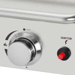 • Ideal para asar pescados, carnes y verduras.• Plancha de gas con tres quemadores.• Encendido piezoeléctrico.• Bandeja recoge grasa.• Superficie antiadherente.• Base y plancha de acero inoxidable.• Llama regulable.• Tapa con asa.• Zona de cocción: 59x33.5 cm.
