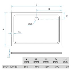 PLATO DUCHA 1400X800X30 LIGERO CARGA MINERAL BLANCO RECT BENOTTI