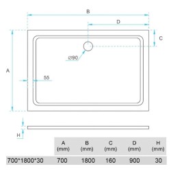 PLATO DUCHA 1800X700X30 LIGERO CARGA MINERAL BLANCO RECT BENOTTI