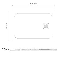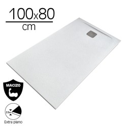 • Plato de ducha de carga mineral extra plano.• Superficie mate con textura en piedra, color blanco.• Macizo.• Antibacteriano.• Medidas: 100 x 80 x 2.5 cm.