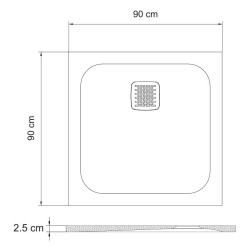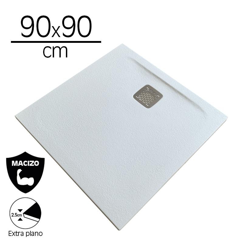 • Plato de ducha de carga mineral extra plano.• Superficie mate con textura en piedra, color blanco.• Macizo.• Antibacteriano.• Medidas: 90 x 90 x 2.5 cm.