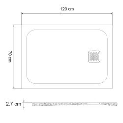 • Plato de ducha de carga mineral extra plano.• Superficie mate con textura en piedra, color negro.• Macizo.• Antibacteriano.• Medidas: 120 x 70 x 2.7 cm.