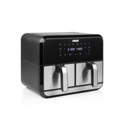 - Puedes preparar un plato diferente en casa cesta - El rango de temperatura de cocción es de 80-200 °C - Viene con una pantalla táctil doble y 8 programas predefinidos - Incluye tres funciones nuevas: cocción doble, agitar y sincronizar - Se apaga automáticamente gracias al práctico temporizador