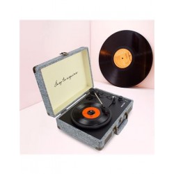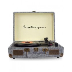 Tocadiscos retro con aguja de cerámica incluida y diseño de maleta vintage.