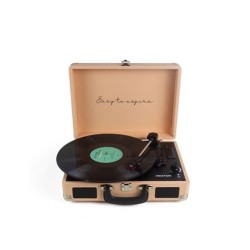 Prixton Tocadiscos Bluetooth VC400 Reproductor y Convertidor De Vinilos - PeachDisfruta de tus vinilos donde quieras gracias a este Tocadiscos Bluetooth VC400 PRIXTON con diseño de maleta vintage.Bluetooth. Funciona como un altavoz. Activa el bluetooth del tocadiscos y conecta tus dispositivos. Reproduce tu mú:sica al volumen que quieras.Altavoces. Integra dos altavoces esté:reo de 3W cada uno. Ademá:s, posee salida RCA para poder conectar otros altavoces y escuchar la mú:sica a un volumen superior.Digitaliza vinilos. Puedes digitalizar tus vinilos y convertirlos a formato WAV a travé:s del puerto USB o la ranura TF del tocadiscos.Portá:til. Gracias a su diseñ:o con forma de maletí:n podrá:s transportarlo fá:cilmente.Decora tu hogar. No solo servirá: como un reproductor de mú:sica. Gracias a su diseñ:o y esté:tica puedes decorar tu hogar y darle un toque vintage a tu saló:n o habitació:n.Especificaciones técnicas VC400Nº de altavoces: 2 estéreoConexión bluetoothReproductor y convertidor de vinilos a WAVConversión a través de USB o MicroSDReproducción de música: Radio FM y BluetoothVelocidad: 33.3/45/78 rpmSalidas RCA y auriculares