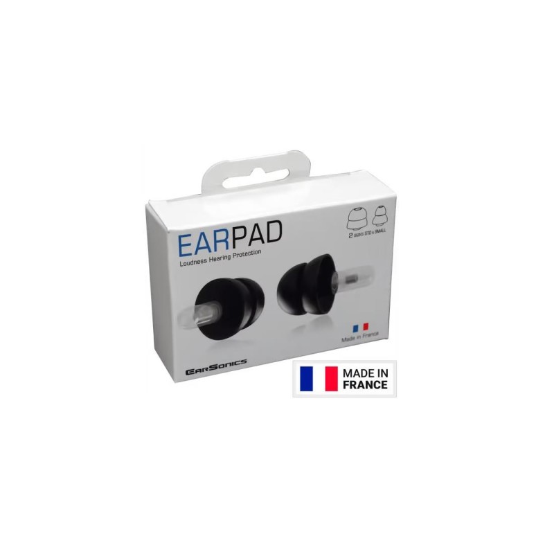Earsonics. Protector auditivo EAR PAD - Apto para niños : Sí- Atenuación: 16 dB- Categoría: protección auditiva- Color: Negro- Funda incluida: Sí- Cantidad: 1- Reutilizable: Sí- Tipo: in-ear- Especificaciones complementarias :- Se suministran con una funda de EVA y dos tamaños de almohadillas de silicona muy suaves y antialérgicas.- Atenuación media: 16 dB