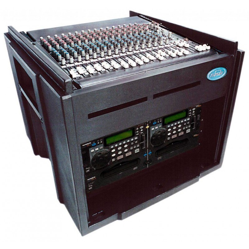 Rack con 10 uds.rack en la parte superior para mesa y 6 uds. de rack fontales. Dimensiones 53 x 58 x 60 cm. Peso 18 Kg.