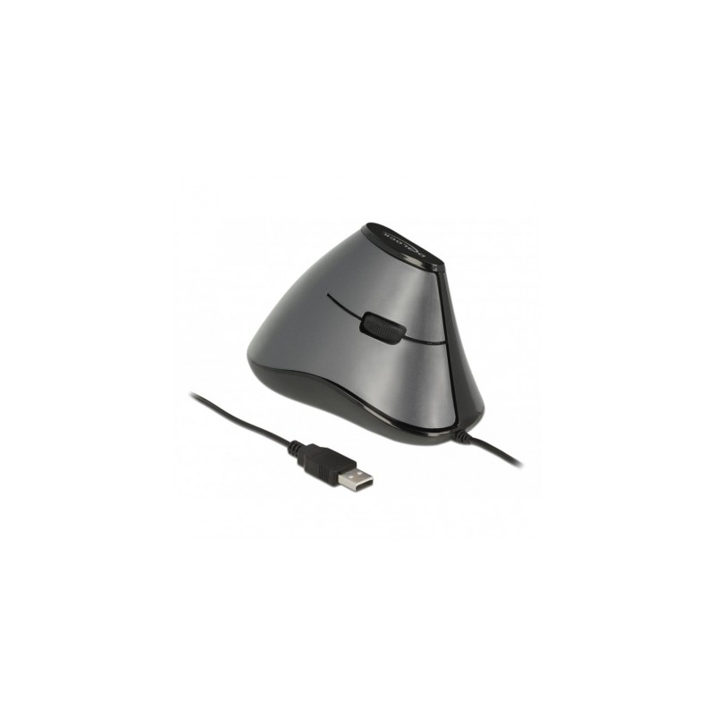 Este ratón USB vertical con cable de Delock es adecuado para los diestros y se puede conectar a un puerto USB libre de un PC o portátil. Debido a su diseño ergonómico, la mano permanece en posición vertical y no tiene que girarse. Así, el ratón puede usarse preventivo o con dolor de partida, p. ej., RSI (lesión por esfuerzo repetitivo). Especificación técnica • Conector: 1 x USB 2.0 Tipo-A macho • Para diestros • 4 botones estándar, 1 rueda de desplazamiento • Sensibilidad: 1200 ppp • Temperatura de funcionamiento: -5 °C ~ 40 °C • Humedad de funcionamiento: 20 ~ 90 % • Conectar y listo (Plug & Play) • Dimensiones (LAxANxAL): aprox. 129,60 x 68,76 x 73,00 mm • Longitud del cable: aprox. 1,6 m • Peso: aprox. 116,4 g • Color: gris oscuro / negro Requisitos del sistema • Windows 7/7-64/8.1/8.1-64/10/10-64, Linux ex Kernel 4.x.x • PC o equipo portátil con un puerto USB Tipo-A disponible Contenido del paquete • Ratón USB vertical   General Función : Plug & Play Style: Diestros Interface conector : 1 x USB 2.0 Type-A macho Technical characteristics Temperatura de funcionamiento: -5 °C ~ 40 °C Humidity: 20 ~ 90 % Sensibility: 800 dpi Physical characteristics Weight: 116,4 g Longitud del cable: 1.8 m Longitud: 129,60 mm Width: 68,76 mm Height: 73,00 mm Color: grey / black Botones: 4 botones estándar, 1 rueda de desplazamient