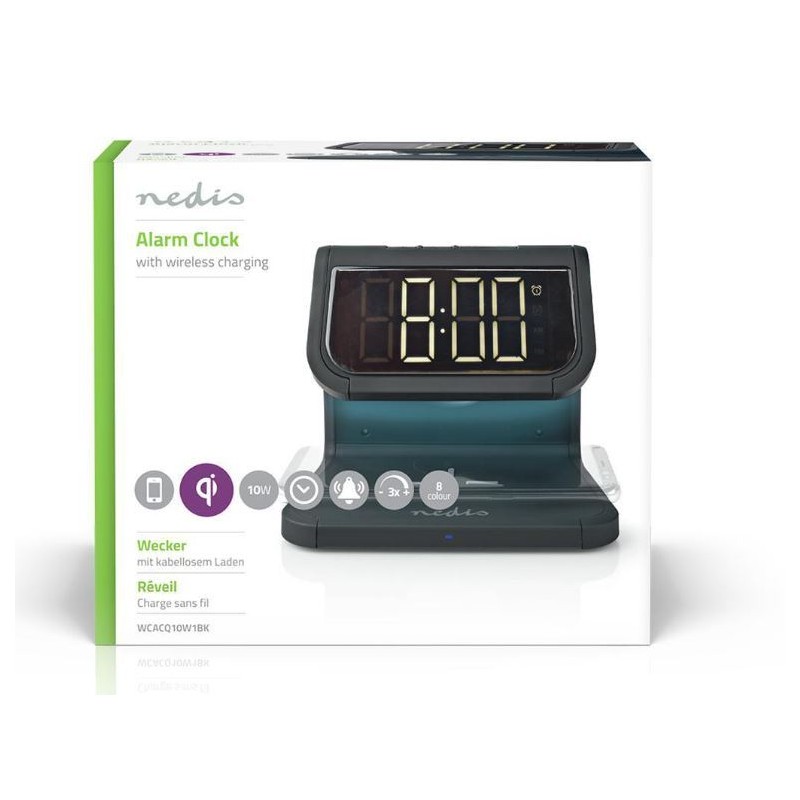 Reloj despertador + carga Inalambrica 8 colores.Dispone de tres funciones: carga inalámbrica QI, reloj LED con función de alarma y luz nocturna.salida máxima que admite: 5 W, 7,5 W o 10 W.Está equipado con una salida USB-A para que pueda cargar sus dispositivos con un cable USB.
