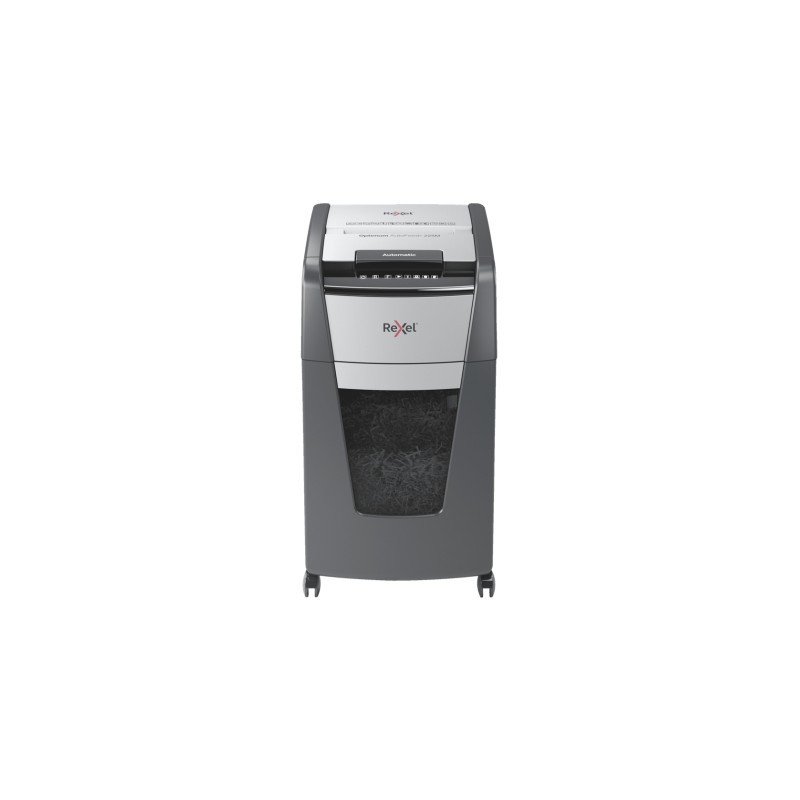 CaracterÃsticas - Negro, Gris Microcorte Ancho de trabajo: 23 cm - Trituración de grapas Trituración de papel Triturador de tarjetas de crédito - Capacidad de la cesta: 60 L 225 hojas 55 dB Especificaciones CaracterÃsticas Tipo de triturador de papel: Microcorte Ancho de trabajo: 23 cm Trituración de grapas: Si Trituración de papel: Si Triturador de tarjetas de crédito: Si Trituración de clips: Si Tamaño de trituración de papel: 2x15 mm Capacidad de la cesta: 60 L Mecanismo antiatascos: Si Capacidad de cesto: 225 hojas Nivel de ruido: 55 dB Tipo de control: Tocar Rueda de reenvio: Si Número de ruedas: 4 rueda(s) Nivel de seguridad (papel): P-5 Ciclo de trabajo: 30 min Color del producto: Negro, Gris Peso de media: 80 g/m² ISO tamaño de serie A (A0...A9): A4 Indicador de depósito lleno: Si Peso y dimensiones Ancho: 415 mm Profundidad: 465 mm Altura: 735 mm Peso: 18 kg