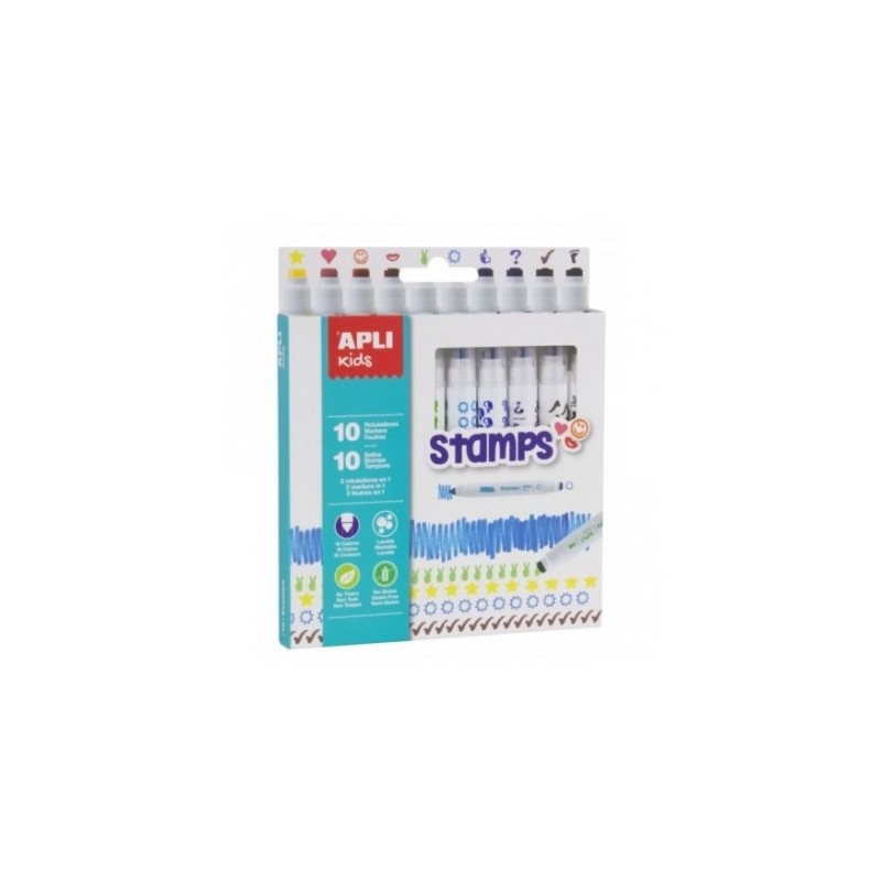ROTULADORES STAMPS APLI KIDS 10 UNIDADES DOBLE PUNTA COLORES SURTIDOS PARA NIÑOS A PARTIR DE 3 AÑOS 16807
