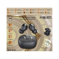 Auric. Sami AIR DOTS TWS negro mini 40mAh/320mAhLos auriculares Sami AIR DOTS TWS ofrecen una experiencia de sonido envolvente y gran comodidad, perfectos para el día a día. Gracias a su tecnología Bluetooth 5.4, cancelación de ruido ENC para llamadas y auto-conexión, garantizan una comunicación clara y una conexión estable. Cuentan con hasta 6 horas de autonomía y estuche de carga compacto, siendo ideales para uso diario, deporte ligero y desplazamientos. Ref. RS12438N de SAMIEAN: 8435128475607Los Sami AIR DOTS están diseñados para quienes buscan auriculares modernos, compactos y potentes. Incorporan Bluetooth 5.4 + EDR para una conexión rápida y estable con bajo consumo, permitiendo disfrutar de música, llamadas y contenido multimedia con total libertad.Equipados con drivers de 5.8 mm, ofrecen un sonido claro con graves potentes (Super Bass) que mejoran la experiencia auditiva. Sus dos micrófonos integrados por auricular y la tecnología ENC para cancelación de ruido en llamadas aseguran conversaciones más claras incluso en ambientes ruidosos.Su estuche con 320 mAh ofrece múltiples cargas, mientras que cada auricular tiene batería de 40 mAh, permitiendo hasta 6 horas de reproducción continua. Disponen de controles táctiles, modo manos libres, auto-conexión al sacarlos del estuche y diseño resistente a salpicaduras IPX4, ideal para usar durante ejercicio o en exteriores.Además, incluyen correa de mano integrada en el estuche para mayor practicidad y transporte seguro.Especificaciones técnicas:Modelo: RS12438N.Tipo: Auriculares TWS.Bluetooth: BT 5.4 + EDR.Micrófonos: 2 por auricular.Cancelación de ruido: ENC para llamadas.Driver: 5.8 mm.Batería auricular: 40 mAh.Autonomía: Hasta 6 horas aprox.Estuche de carga: 320 mAh.Puerto de carga: USB-C.Funciones: Auto-conexión, manos libres, controles táctiles, sonido Super Bass...Resistencia: IPX4 (resistente a gotas/lluvia ligera).Accesorio adicional: Correa de mano en el estuche.