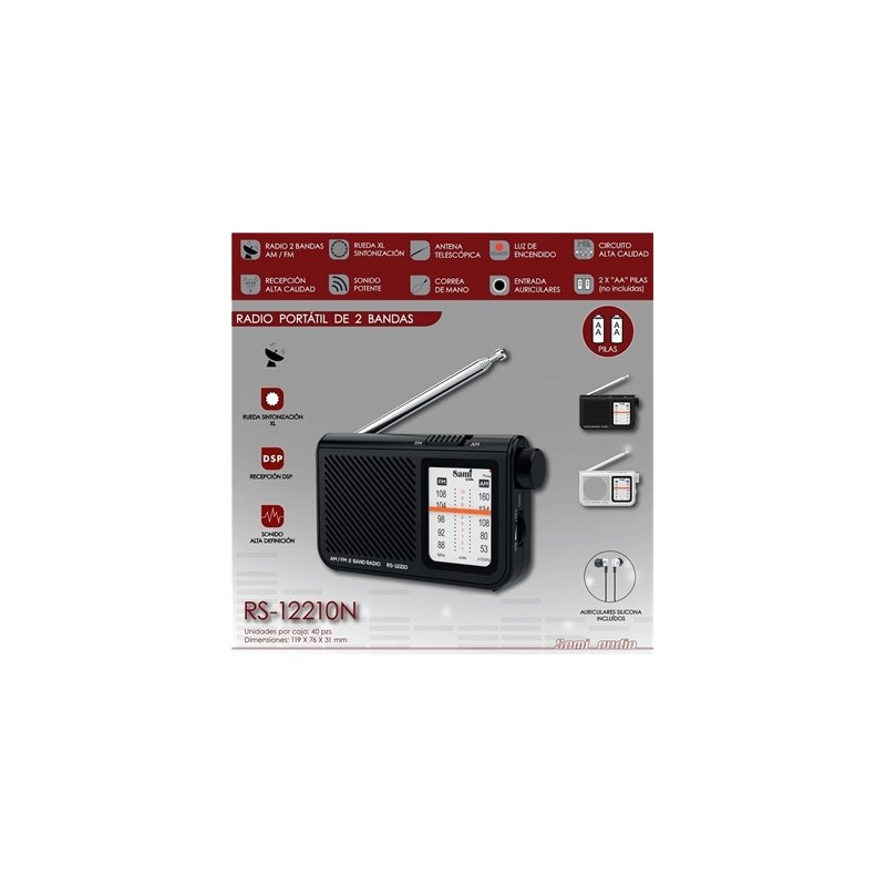 SKU IN-RM-RS12210NRadio Sami portátil 2 bandas ruedas XL recepción H NEGRO