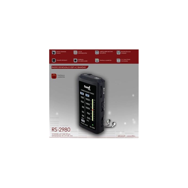 SAMI Radio Bolsillo Analogica AM/FM RS-2980 Con Auricular Negra