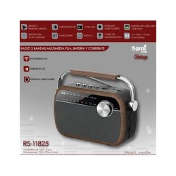 SAMI Radio Portatil Vintage AM/FM Con BT Ranura Usb y Micro SD RS-11825 Negra Madera