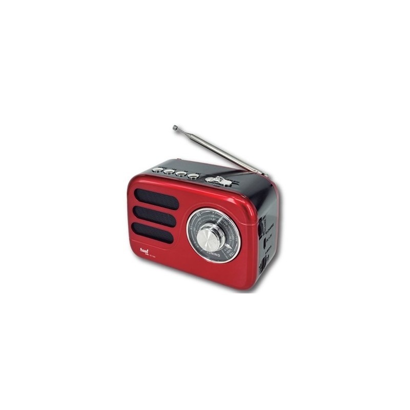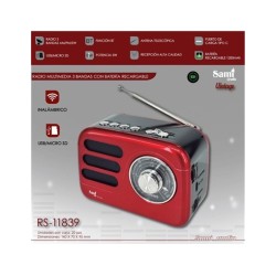 SAMI Radio Vintage Mini Con Bluetooth/USB/Micro SD 5W RS-11839 Rojo Recargable