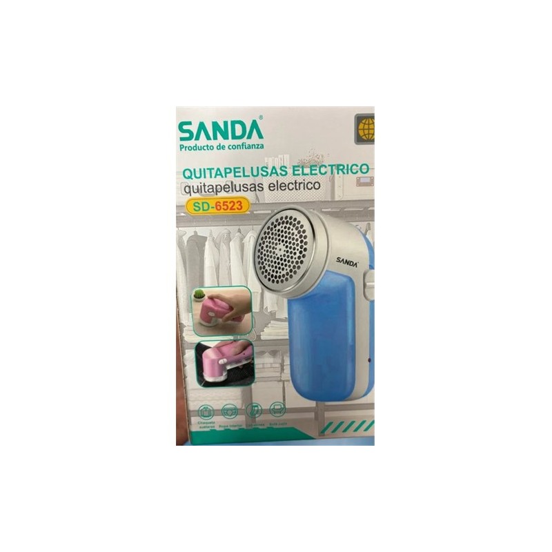 Quita pelusas eléctrico SANDA SD-6523, ideal para mantener tu ropa impecable. Es de color azul y blanco, con un diseño compacto y práctico.- Elimina pelusas y motas de la ropa.- Funciona con pilas (pilas no incluidas).- Fácil de usar y transportar.- Perfecto para chaquetas, suéteres, ropa interior, calcetines y sofás.