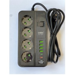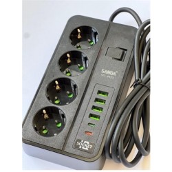 SANDA Regleta 4 Enchufes+ 4xUsb A+2xTipo C Con Interruptor 3000W SD-4453