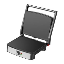 • Multifunción, placas lisas.• Panel superior basculante que nos permite calentar por ambas caras sin prensar los alimentos.• Protección de sobrecalentamiento.• Regulador de temperatura.• Indicadores luminosos.• Asas de tacto frío.• Exterior acabado inox.• Apertura hasta 180°.• 2.200 W.• 2 placas antiadherentes de gran tamaño: 29 x 23 cm.