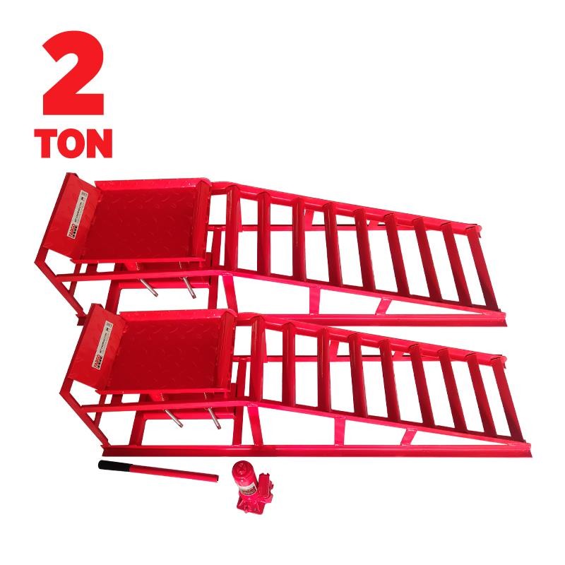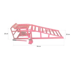 • Rampas elevadoras para vehículos.• Incluye gato hidráulico.• Capacidad de carga: 2.000 kgs.• Altura ajustable.• Rango de elevación: 260-370 cm.• Longitud total de la rampa: 1140 mm.• Tamaño de la rampa: 1140x302 mm.