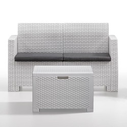 • Conjunto de jardín serie Nebraska.• Juego de 3 sillones de terraza y una mesa.• Nebraska le da un toque extra al ambiente, el efecto ratán lo hace elegante y de buen gusto.• Ideal para relajarse al aire libre gracias a los agradables asientos y al respaldo alto.• Acabado en rattan, resina impermeable y reciclabe.• Dos sillas de: 75 x 79 x 57.5 cm.• Sofá de dos plazas: 131 x 79 x 57.5 cm.• Mesa: 69.5 x 37 x 48 cm.