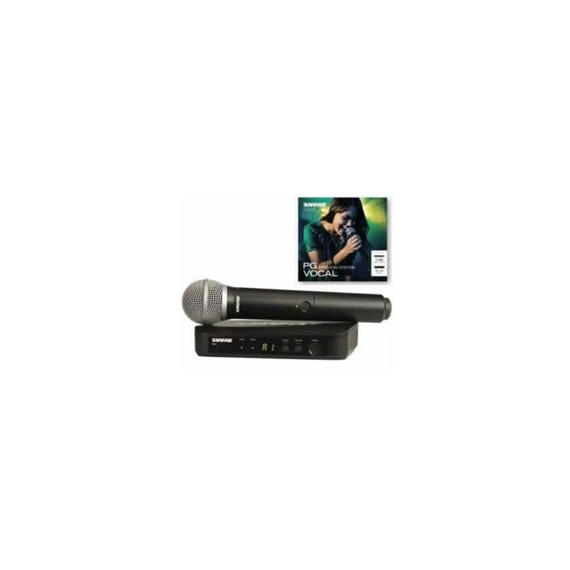 Shure. Set inalámbrico para vocalista micro de mano BLX24E/PG58. de hasta 12 frecuencias compatibles. Compuesto por receptor BLX4 y emisor de mano BLX2/PG58