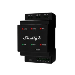 Características Shelly Pro 3 alimentación del relé Negro Especificaciones Características Tipo de producto: Relé inteligente Color del producto: Negro Wifi: Si Wi-Fi estándares: 802.11b, 802.11g, Wi-Fi 4 (802.11n) Frecuencia Wi-Fi: 2,4 GHz Rango máximo en interiores: 30 m Potencia de transmisión: 13,35 dBmW Cantidad de canales: 3 canales Algoritmos de seguridad soportados: HTTPS Planificación semanal: Si Hora de salida/puesta del sol: Si Activación/desactivación inteligente: Si Montaje en carril DIN: Si Capacidad de corriente de contacto: 16 A Operado remotamente: Si Indicadores LED: Si Frecuencia de banda: 2.412 – 2.472 Ethernet LAN (RJ-45) cantidad de puertos: 1 Compatible con scripts (secuencia de comandos): Si Webhooks (acciones de URL): Si Bluetooth: Si Protección contra sobrecalentamiento: Si Protección de sobrecarga: No Control de energía Consumo energético: 3 W Máxima corriente: 48 A Voltaje de entrada AC: 110 - 240 V Frecuencia de entrada AC: 50 - 60 Hz Tensión de salida CA: 240 V Rango de voltaje DC: 30 V Peso y dimensiones Dimensiones (Ancho x Profundidad x Altura): 59 x 53 x 96 mm Condiciones ambientales Intervalo de temperatura operativa: -20 - 40 °C