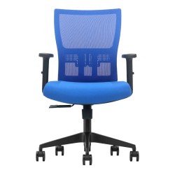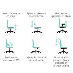 • Silla de oficina estándar con respaldo medio.• El soporte lumbar se puede ajustar en altura.• Ofrece una buena sensación de sentado.• Reduce la tensión abdominal.• Reposabrazos ajustables en altura.• Asiento con espuma moldeada.• Pistón elevador de gas Clase 4.• Base de nailon.• Ruedas de nailon con giro 360º.