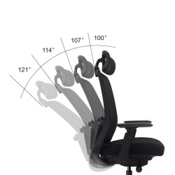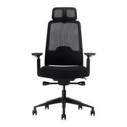 • Silla de oficina ergonómica negra con respaldo alto.• Reposacabezas ajustable en altura e inclinación.• Respaldo de malla con diseño curvo que ofrece un soporte constante para la cintura y la espalda del usuario.• Asiento de espuma moldeada en panal de alta elasticidad y 3 capas de acolchado, ajustable en profundidad.• Soporte lumbar de espuma ajustable en altura y profundidad.• Mecanismo de autoequilibrio con bloqueo de 4 posiciones.• Reposabrazos de PU de gran tamaño 3D.• Altura del asiento ajustable.• Pistón elevador de Clase 4.• Base de nailon de 350 mm.• Ruedas de nailon de 60 mm.