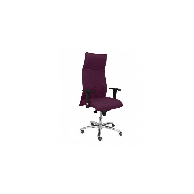 Sillón de dirección ergonómico con mecanismo sincro y regulable en alturaSillón de dirección de diseño y buenísima calidad, el buque insignia de la marca Piqueras y Crespo, fabricado en España, su calidad y su acabado está plenamente testado y asegurado por más de 15 años de experiencia en el sector, usamos para su fabricación materiales de primera calidad. Apto para uso intensivoDetalles técnicosRespaldo ergonómico y acolchado para una mayor adaptación a la espalda. Refuerzo de tela de nylon de alta resistencia. Relleno de espuma de 20 mm. de grosor y 20 Kg/m3 de densidadAsiento ergonómico y acolchado para una mayor comodidad del usuario. Relleno de espuma de 8cm de grosor y 30 kg/m3 de densidadAsiento y respaldo tapizados en tejido BALI color moradoEstructura de tubo oval de 30x15 cm. Pared de 1,5 mm. Pletina de 30x4 cmBrazos regulables en altura de poliuretano color negro y acabado cromadoMecanismo sincro multiposición con regulador de la presión del sincro(permite la regulación del asiento y el respaldo de manera independiente)Regulable en altura mediante cilindro de gas de 10 cm(siendo su altura en la posición más baja de 50 cm y la más alta 60 cm)Giratoria 360ºGas cromadoBase cromada de alta resistencia de 5 radios y 70 cm de diámetroRuedas de parquet con eje interno de aceroOtros detallesFavorece una buena postura integral para evitar posibles problemas de espaldaErgonómicaFABRICACIÓN ESPAÑOLAInstrucciones de montaje incluidaFácil montajePara pedidos de gran volumen, póngase en contacto con nosotros para consultar disponibilidad